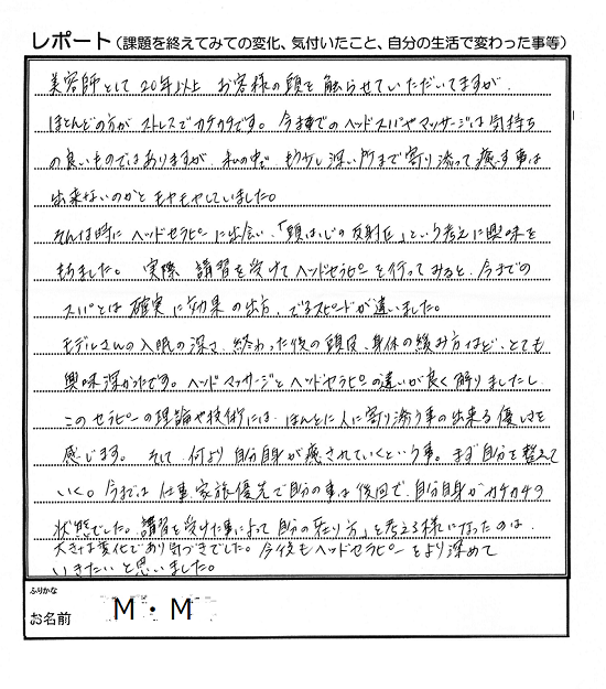 ヘッドセラピストの真髄を究める、当協会のメイン講座です。